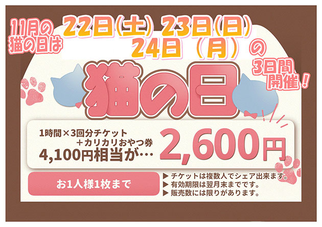 ★11月の猫の日は、22日(土)・23日(日)・24日(月)の3日間開催!